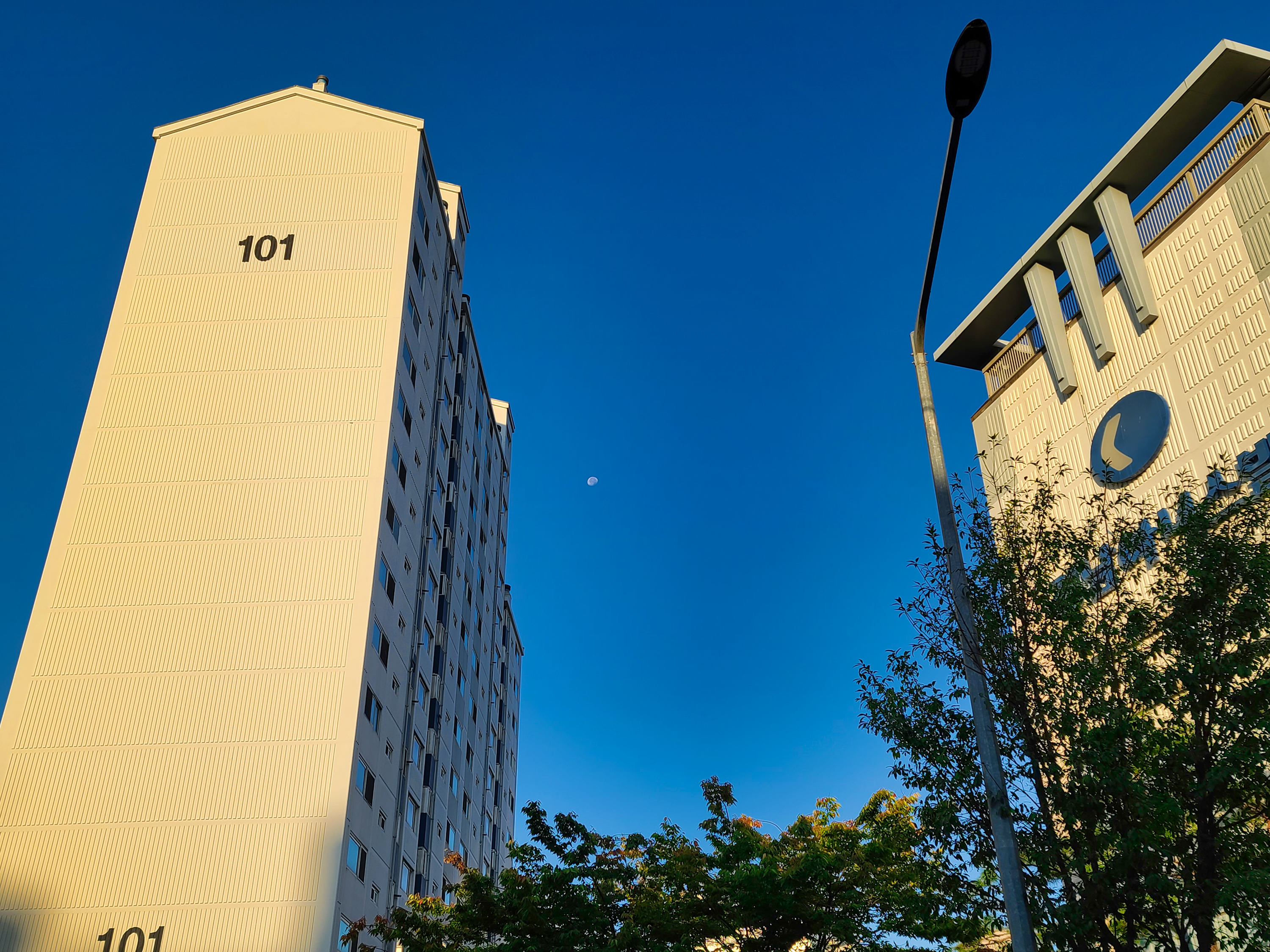 반복되는 비트가 귀를 간지럽히고, 그리 싫지 않은 은행향이 은은하게 올라오고, 고개를 들어보니 달님이 아직 햇님과 공수교대를 못했는지 꽤 높은 곳에서 날 물끄러미 바라보고 있다. 이쯤되면 못한게 아니라 안한거다. 나한테 '지금 기분 좋니?'라고 말을 거는 것 같다.