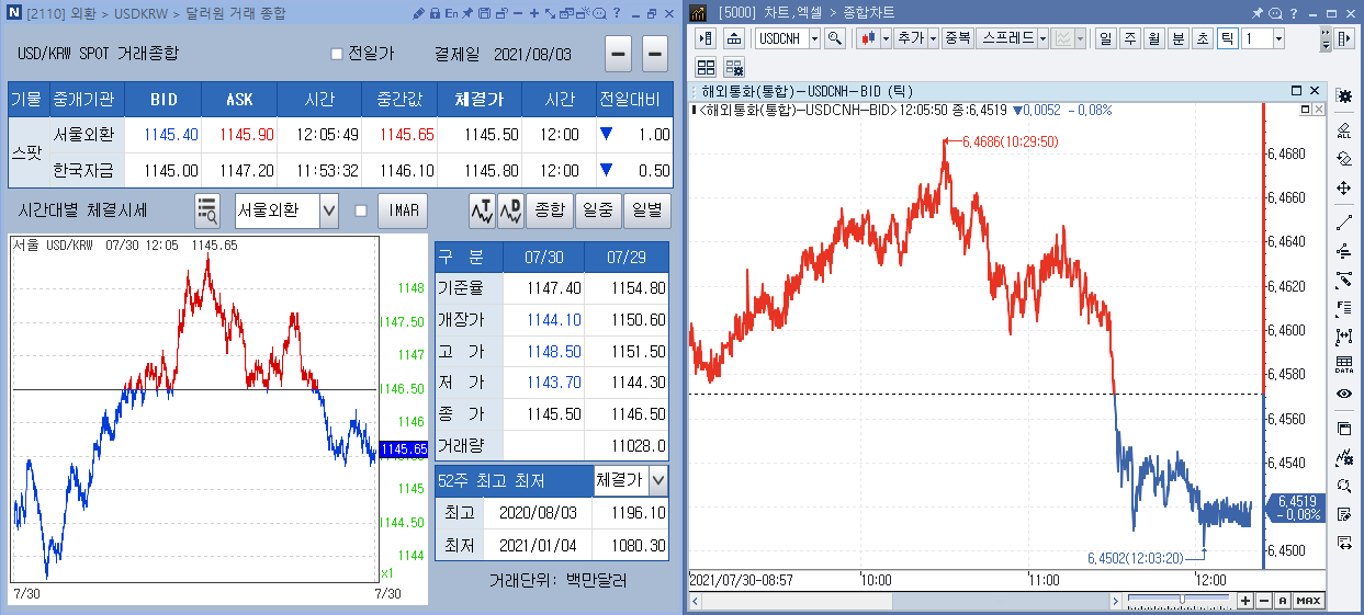 늘 그런 것은 아니지만 원화와 위안화는 여러가지 이유로 비슷한 흐름으로 움직이는 경우가 많은데, 어제 오늘 들어 이런 모습이 더 두드러진다. 두 통화간의 코릴레이션을 금융기관의 리서치센터처럼 분석할 능력은 없지만, 오늘은 거래를 하며 장중 틱 차트를 멍하니 보고있는데 움직임이 너무 유사해서 괜히 소름이 돋았다.