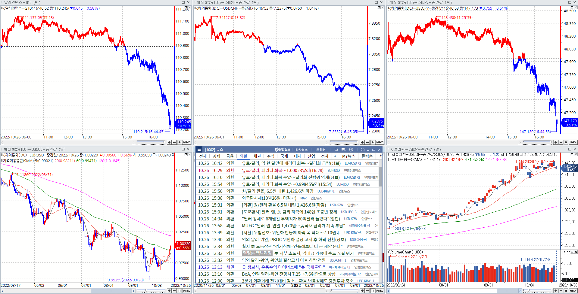 오후 3시경부터 달러화가 급락하면서 EUR, CNH, JPY 동반 강세 시현.