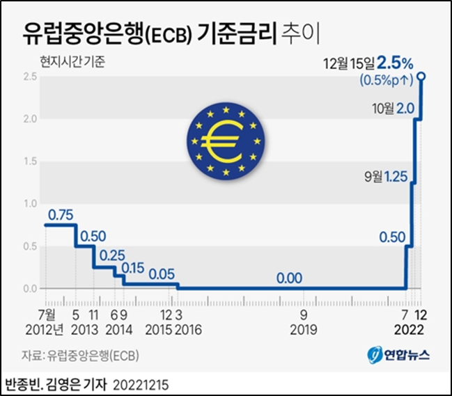 - 크리스틴 라가르드 유럽중앙은행(ECB) 총재가 금리인상 속도를 50bp로 줄였지만 꾸준한 금리인상이 더 필요하다고 강조했음.